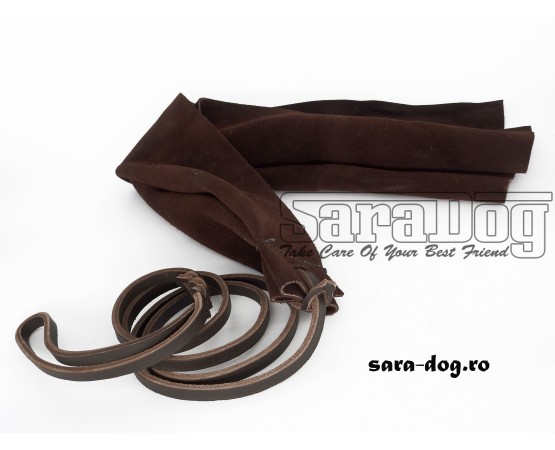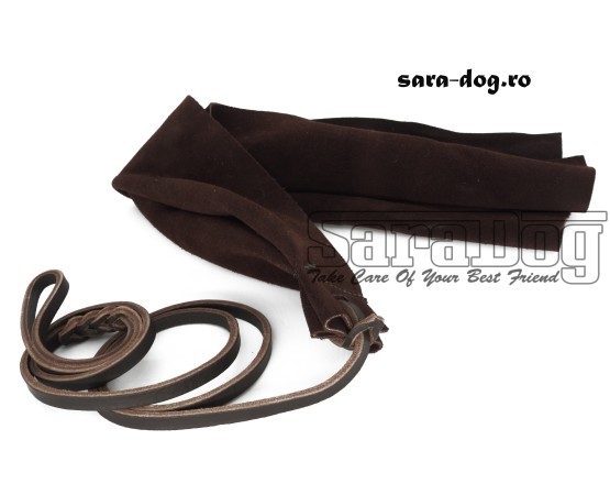 Tug tip carpa ABC Sport Klin , confectionat din piele naturala foarte moale cu lungimea de 52 cm , prevazut cu lesa din piele naturala , pentru dresaj canin .