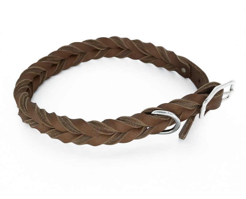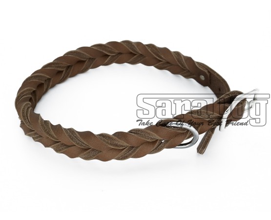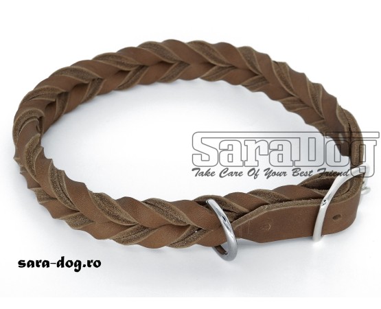 Zgarda de lux TWIN Taupe impletita din piele naturala pentru caini .