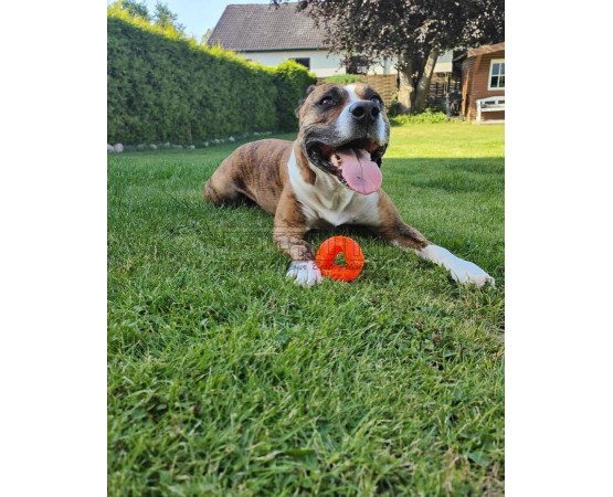 Foarte robusta , aproape indestructibila ( atunci cand este utilizata corect ca jucarie de aport ) Nu este jucarie de ros !