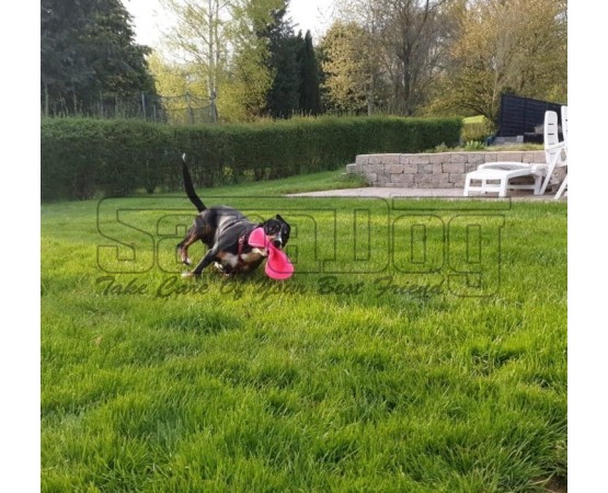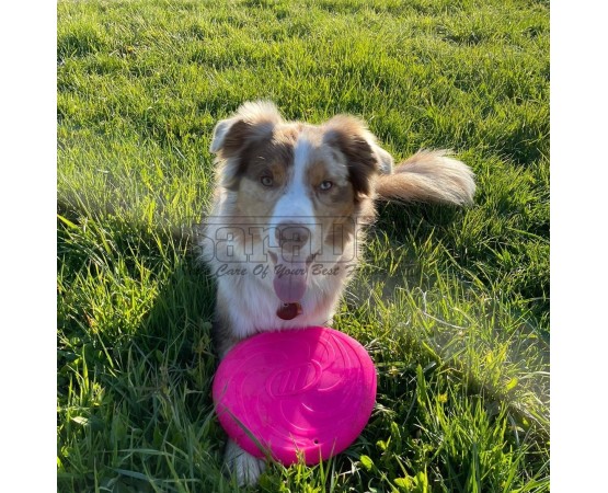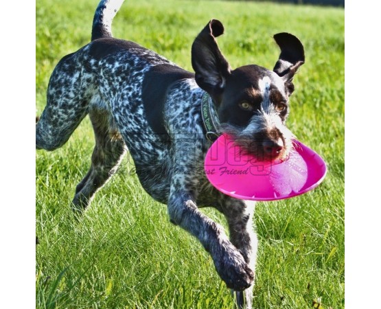 Frisbee Moby Soft pentru caini , foarte robuste , bine inteles nu sunt indestructibile , dar aproape : - ) . Plutesc in apa , nu au miros , nu contin PVC .