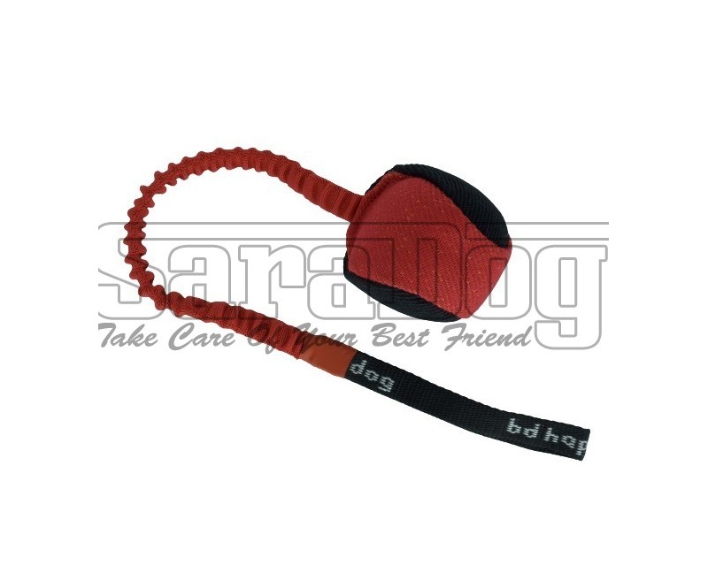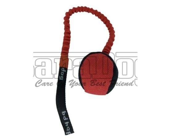 Minge pentru dresaj canin , confectionata din material francez de calitate premium , prevazuta cu lesa elastica atasata . Mingea este confectionata din material francez de calitate premium , umpluta cu fibre de silicon hipoalergenice , care nu retin umiditatea , sunt sigure pentru caine , asigura revenirea rapida a mingei la forma initiala imediat ce a fost eliberata muscatura . Marginile mingei sunt tivite initial , apoi sunt cusute dublat pentru o buna rezistenta . Ata cu care sunt realizate cusaturile este foarte rezistenta , antibacteriana si rezistenta la saliva cainilor . Manerul tip lesa scurta elastica are rol de amortizare a socurilor atat pentru proprietar cat si pentru caine . In plus la capat , lesa are atasat un maner tip bucla cusut si sigilat suplimentar pentru rezistenta sporita . Circumferinta de 10 cm a mingei o recomanda pentru utilizare atat pentru cainii junior cat si pentru cei adulti . Densitatea semi-dura cat si revenirea rapida la forma initiala fac din aceasta minge un accesoriu foarte apreciat de caini . Senzatia de strivire a mingei va stimula dorinta de posesia a cainilor . Lesa elastica atasata asigura reducerea la minim a socurilor atunci cand se lucreaza cu caini puternici si stimuleaza dorinta si instinctul cainilor deoarece ofera permanent senzatia de castig pentru caine . Manerul tip bucla atasat lesei elastice asigura o buna manevrare si recuperare a mingei . Dupa creare a dependentei de aceasta minge poate fi utilizata o minge asemanatoare cu maner clasic sau chiar cu magnet pentru obtinerea unor performante desebite in dresajul canin competitional .