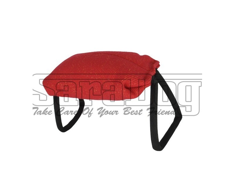 Perna de muscatura tip rugby , confectionata din material francez calitate premium , doua manere laterale care permit plasarea pe sol , umpluta cu fibre de silicon hipoalergenice . Materialul francez de calitate premium din care este confectionata perna de muscatura este identic cu cel utilizat la confectionarea costumelor profesionale de muscatura . Acest tip de material numit si nylcott este o combinatie intre bumbac si nailon si este recunoscut si apreciat pentru rezistenta la muscaturile cainilor , durabilitatea tesaturii , si flexibilitatea materialului fiind foarte utilizat la confectionarea echipamentelor pentru dresaj canin . Fibrele de silicon cu care este umpluta perna de muscatura sunt hipoalergenice , nu retin umiditatea , sunt antibacteriane si asigura revenirea rapida a pernei la forma initiala imediat ce a fost eliberata muscatura . Manerele laterale sunt stabile si permit plasarea pernei pe sol pentru exercitiile de trimitere inainte . Perna poate fi utilizata pentru diferite exercitii de dresaj . Forma de rugby permite formarea muscaturii corecte a cainilor juniori sau adulti . Perna de muscatura este destinata antrenarii cainilor si nu este recomandat sa fie lasata permanent la dispozitia cainilor nesupravegheati .