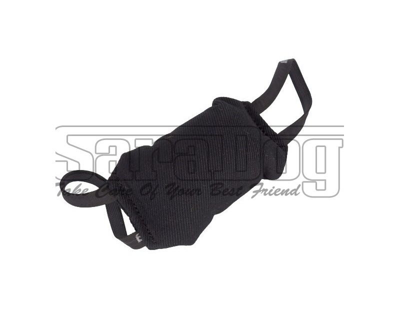 Tug pentru dresaj canin , confectionat din material francez calitate premium , prevazut cu doua manere laterale tip bucla , umplut interior cu fibre de silicon hipoalergenice , care nu retin apa , sunt antibacteriene si asigura revenirea rapida la forma initiala imediat ce a fost eliberata muscatura . Materialul francez utilizat la confectionarea acestui tug tip minge de rugby este de calitate premium , fiind identic cu cel utilizat la confectionarea costumelor profesionale de muscatura . Manerele laterale permit utilizarea eficienta in sigurata a tug-ului .