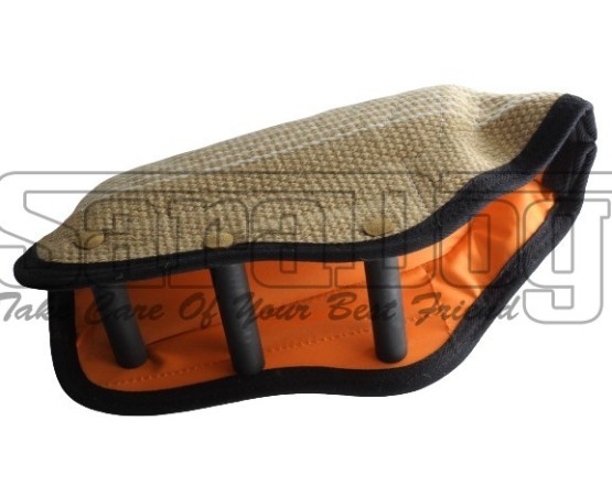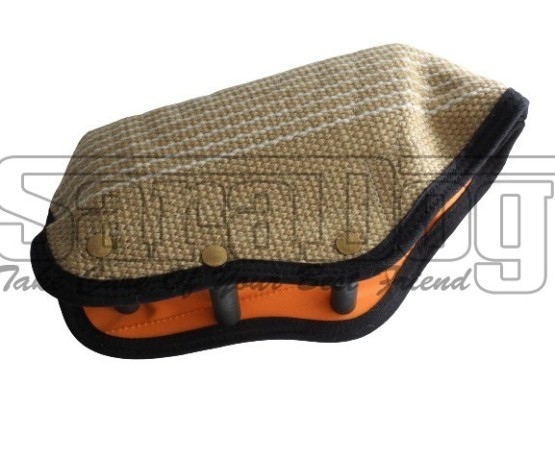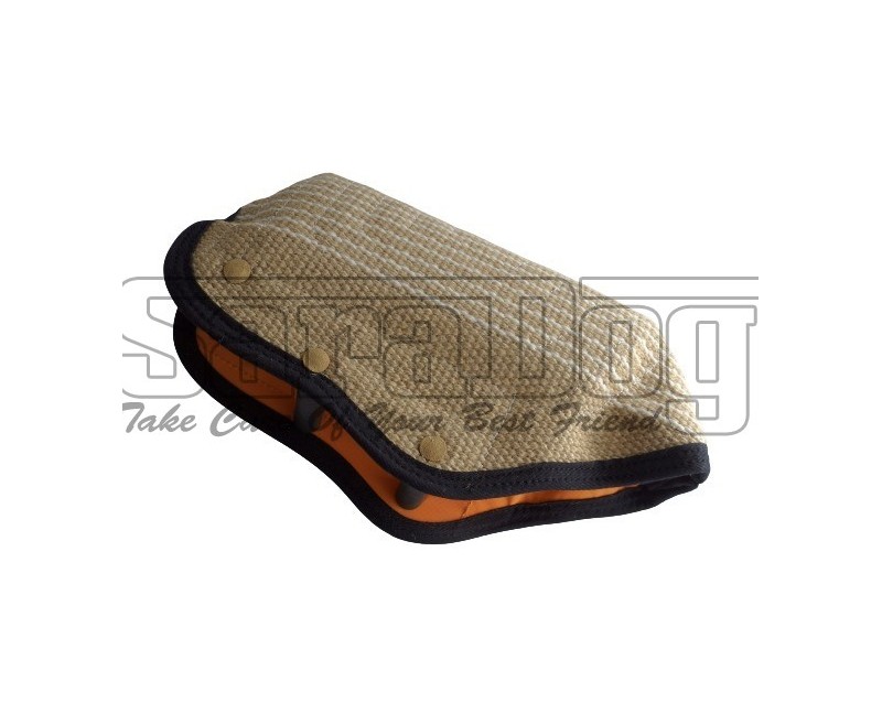 Maneca scurta pentru dresaj canin , confectionata din iuta de calitate premium , prevazuta cu 3 manere interioare . Aceasta maneca este accesoriul ideal pentru antrenarea cainilor junior si adult pentru diferite tipuri de sporturi canine care implica muscatura . Maneca scurta este confectionata din materiale durabile si asigura o excelenta manevrabilitate . Maneca poate fi utilizata atat ca perna de muscatura , cat si ca maneca de protectie . Suprafata de muscatura este in forma de pana . Iuta de calitate premium are tesatura tip bob de orez si permite o priza excelenta cainelui . Fiind o piesa compacta , maneca poate fi purtata ca si prada de catre caine imediat ce a castigat muscatura . Cele 3 manere interioare sunt foarte solide si permit o buna gestionare a muscaturii cainelui . Interiorul manecii este captusit cu material impermeabil care impiedica acumularea umiditatii si implicit ingreunarea manecii .