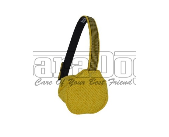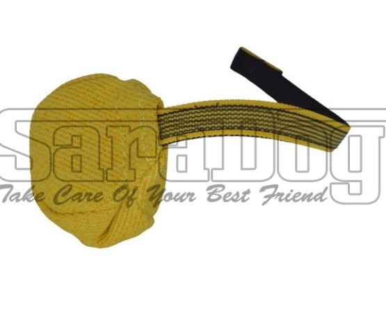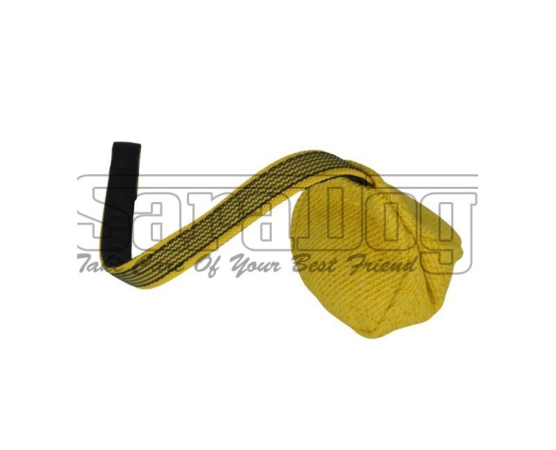 Minge pentru dresaj canin , confectionata din material francez de calitate premium , prevazuta cu lesa scurta atasata . Materialul francez utilizat la confectionarea mingei este de calitate premium , fiind identic cu cel utilizat la confectionarea costumelor profesionale de muscatura . Forma mingei este una bine gandita pentru a permite cainelui sa obtina si sa mentina o priza corecta si in acelasi timp mingea sa reziste la muscaturi repetate .