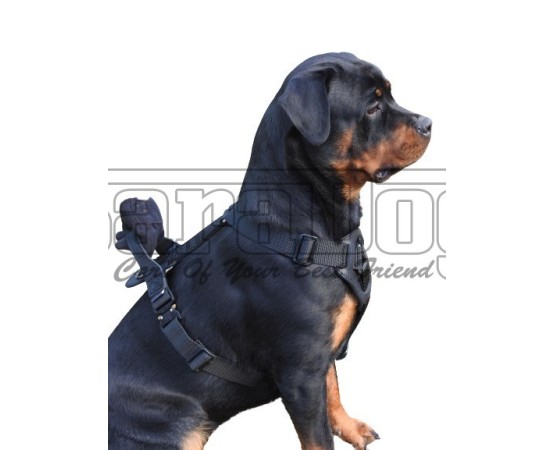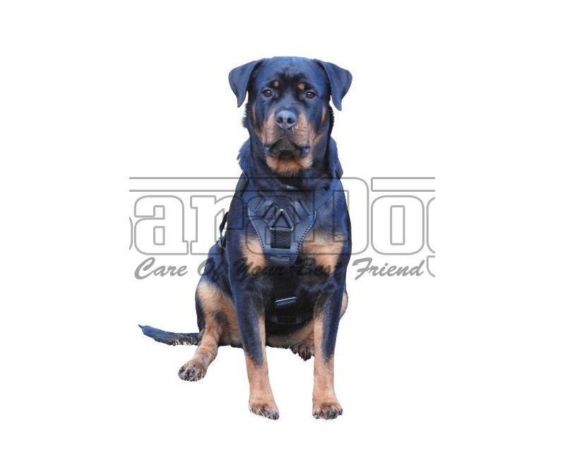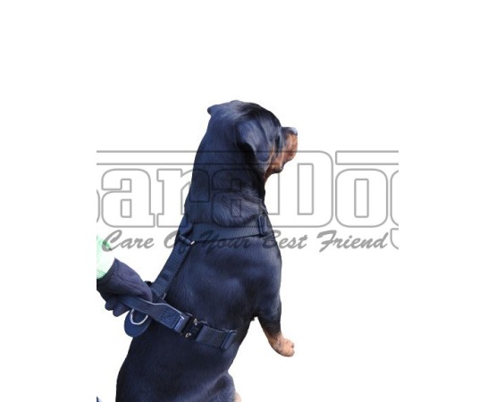Ham de lucru pentru caini , confectionat din material textil durabil , prevazut cu elemente din piele naturala captusita cu strat de pasla hipoalergenica in zonele de tensiune maxima , reglabil in 5 puncte pentru potrivire perfecta , prevazut cu doua sisteme de inchidere Cobra , prevazut cu inel pentru atasarea lesei si maner din piele naturala dublata . Hamul este confectionat din banda textila rezistenta care asigura o asezare perfecta pe caine in timpul utilizarii . Reglarea in 5 puncte esentiale asigura de asemenea o potrivire perfecta . Hamul se regleaza usor lateral in jurul cutiei toracice , frontal pe ambele laturi in zona pieptului cainelui si sub cutia toracica a cainelui . Toate aceste reglaje asigura potrivirea perfecta in functie de dimensiunea anatomica a fiecarei rase pentru care va fi utilizat hamul . De asemenea , posibilitatea reglarii hamului in 5 puncte asigura utilizarea atat in perioadele de crestere atunci cand dimensiunea cainelui se modifica uneori destul de rapid , cat si atunci cand cainele creste sau scade in greutate . Frontal hamul are prevazut un element din piele naturala captusit cu pasla hipoalergenica cu rol de distrubuire uniforma a tensiunii in timpul lucrului , premite cainelui sa respire liber si nu in ultimul rand previne aparitia asigura un bun confort pentru caine . Hamul este prevazut cu inel pentru atasarea lesei , zona inelului este de asemenea protejata de strat de piele naturala captusita cu pasla hipoalergenica . Hamul are prevazut maner din piele naturala dublata . Lateral hamul are prevazute sisteme de inchidere rapida Cobra . Sistemele de inchidere Cobra sunt considerate printre cele mai sigure din lume fiind utilizate si preferate de majoritatea fortelor de politie , armata sau securitate care au in dotare caini utilitari .