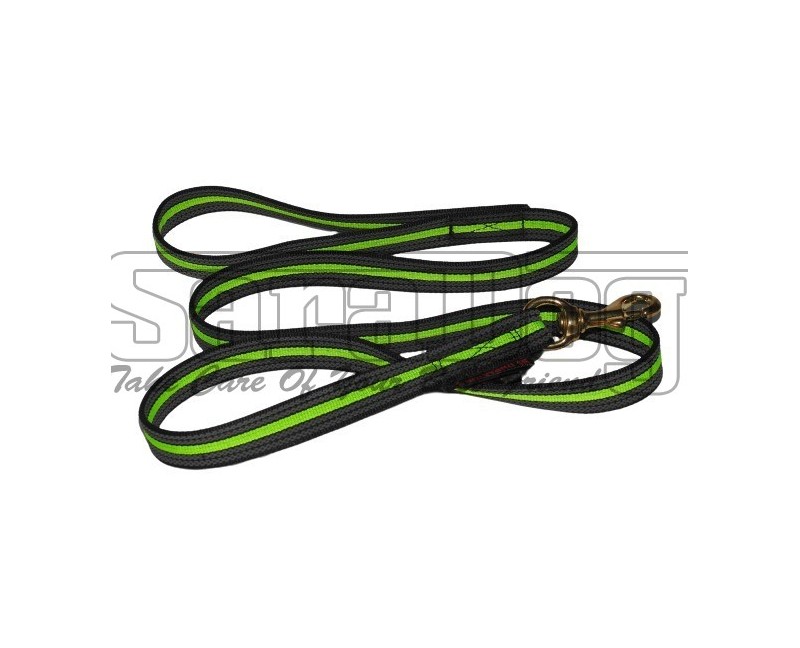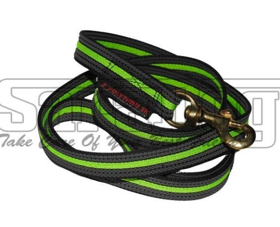 Lesa profesionala cu dubla insertie MAMBA Z Polytanu SK pentru caini 1,5 m . Lesa profesionala MAMBA Z Polytanu SK , confectionata din polipropilena cu dubla insertie de cauciuc , banda neon central care garanteaza o buna vizibilitate , carabiniera din alama masiva care rezista la tensiuni pana la 170 kg , cusaturi durabile realizate cu ata antibacteriana , extrem de rezistenta .