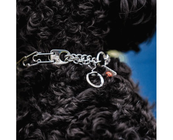 Zgarda profesionala pentru dresaj ULTRA-PLUS Micro cu placuta centrala si lant strangulant INOX , 1,5 mm , 30 cm