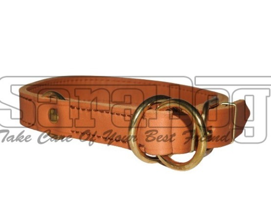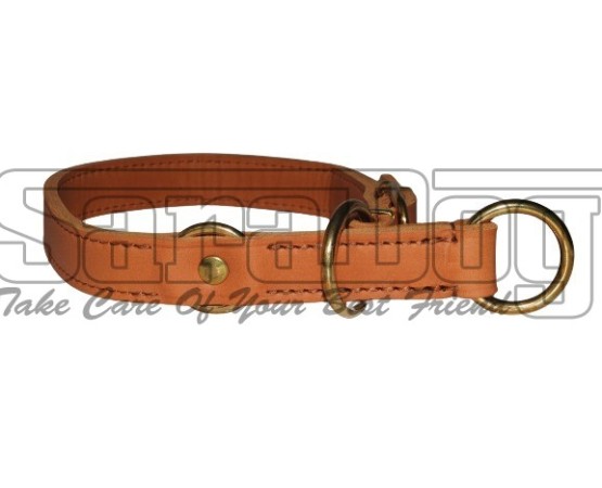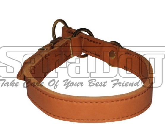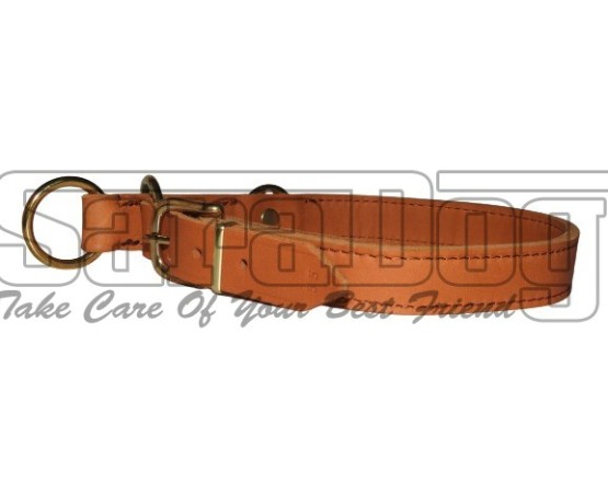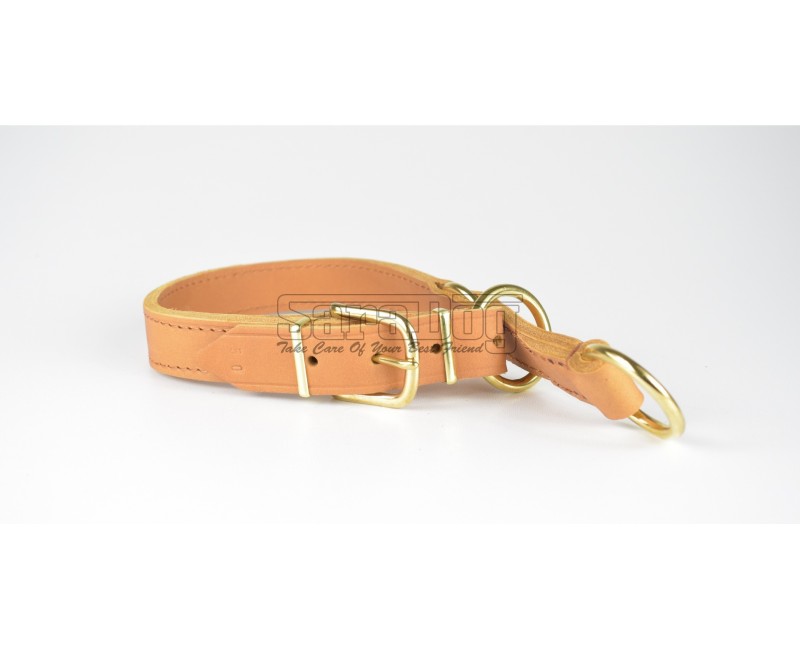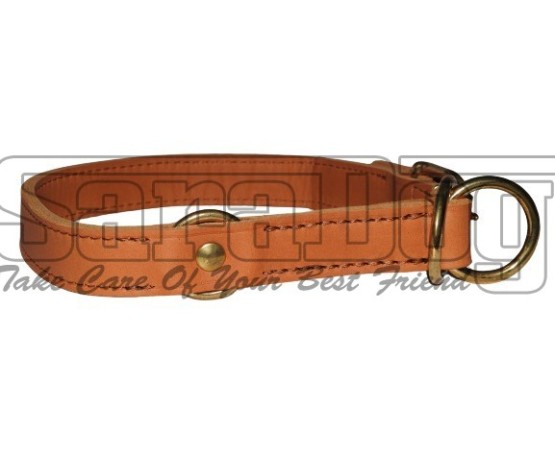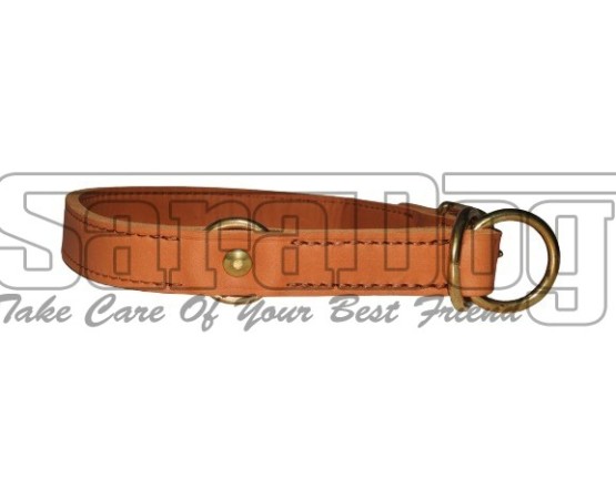 Zgarda strangulanta de calitate super premium ,, Brandy ’’ , reglabila , confectionata din piele naturala Chrome Free , lata de 25 mm , prevazuta cu feronerie din alama masiva .