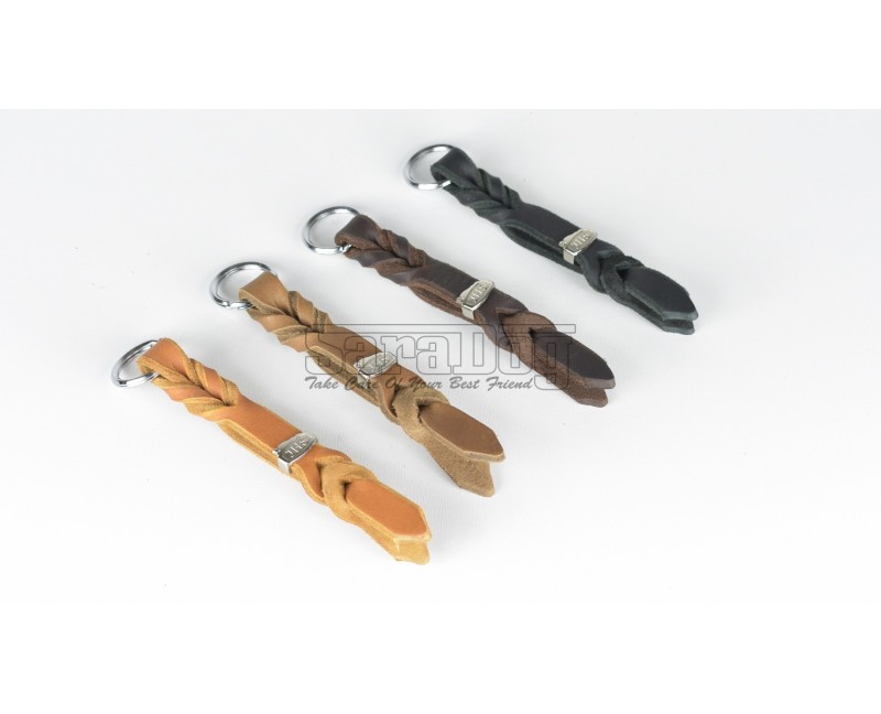 Breloc JHS Hundesport , confectionat din piele naturala Fett de calitate superioara , impletita manual , prevazut cu inel din otel cromat pentru atasarea cheilor .