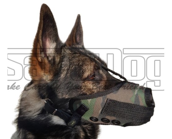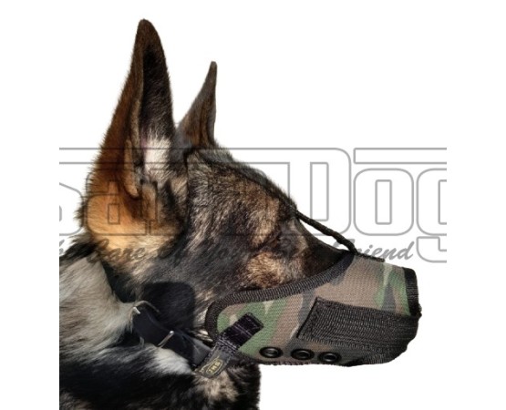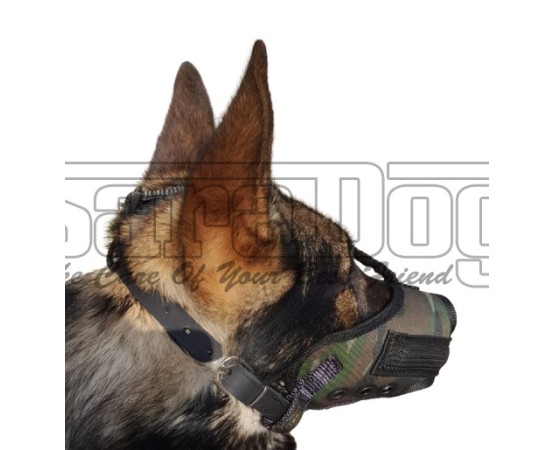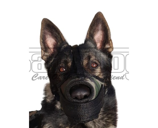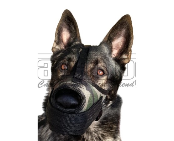 Botnita este confectionata din material plastic special , care este moale si foarte rezistent la deteriorari mecanice . Toata botnita este captusita cu material special impermeabil , utilizat in domeniul profesional militar . Marginile botnitel sunt tivite rotund pentru a preveni iritatiile de contact .
