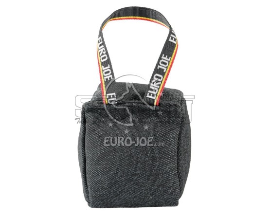 Tug tip cub Euro Joe , confectionat din material francez , prevazut cu maner tip bucla . Acest tip de tug este foarte util pentru initierea mucaturii cainilor , deoarece forma acestuia obliga cainele sa faca o priza larga pentru a putea apuca tug-ul . Manerul ajuta la manevrarea usoara si sigura a tug-ului . Exercitiul de trimitere inainte poate fi usor realizat cu ajutorul acestui tug , deoarece forma de cub permite plasarea pe sol si ajuta cainele in obtinerea unei prize stabile chiar si atunci cand este in miscare . Exercitiile de aport pot fi realizate usor si distractiv atat pentru caine , cat si pentru proprietar . Chiar si o simpla joaca impreuna cu cainele poate fi extrem de distractiva datorita utilizarii acetui tug Euro Joe , tip cub . Tug-ul tip cub este disponibil in doua dimensiuni : M – 10 / 10 cm , L – 17 / 17 cm . Culorile tug-ului pot varia in functie de lotul de material francez utilizat la confectionare . Acest tug tip cub Euro Joe este destinat antrenarii cainilor si trebuie utilizat doar sub supravegherea proprietarului , nefiind recomandata utilizarea ca jucarie de ros . Lasat la dispozitia cainelui nesupravegheat , acesta poate deteriora si inghiti bucati din tug putand aparea astfel probleme medicale .