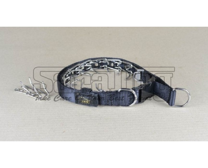 Zgarda de forta profesionala XL JHS Hundesport Germany , prevazuta cu husa textila integrata , zale atasate individual de husa , placute laterale cu logo JHS , doua inele D , strangulare laterala , sistem profesional metalic de inchidere rapida , inchidere laterala Velcro ( care ofera posibilitatea ajustarii zgarzii ) .