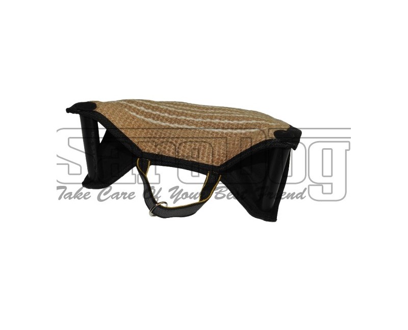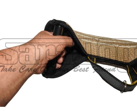Perna profesionala tip fluture pentru dresaj canin , confectionata din iuta de calitate superioara , prevazuta cu doua manere interioare foarte stabile , maner tip bucla plasat strategic lateral , inel suplimentar atasat manerului pentru atasarea unei lese .
