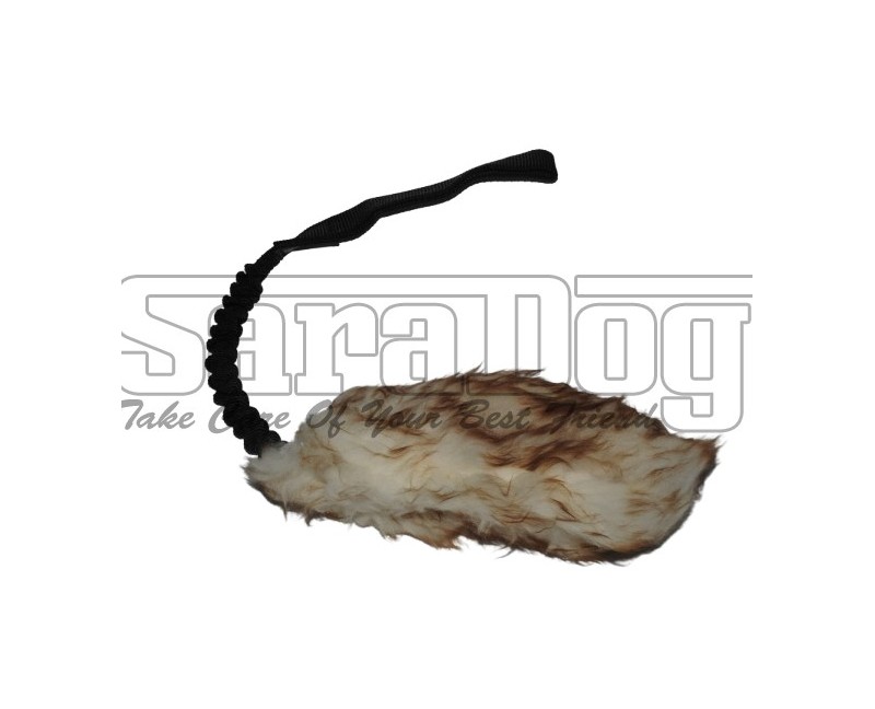 Acest tug extraordinar este confectionat din blana naturala de oaie , foarte atragatoare pentru caini , datorita texturi firului de par natural , a mirosului fin de oaie care activeaza instinctul de vanatoare al cainelui .