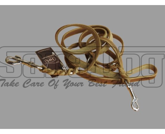 Lesa reglabila in 3 locuri JHS Hundesport Germany , confectionata din piele naturala de cea mai buna calitate culoare Green Olive , prevazuta cu feronerie din otel cromat , feroneria a fost atasata prin impletituri realizate manual .