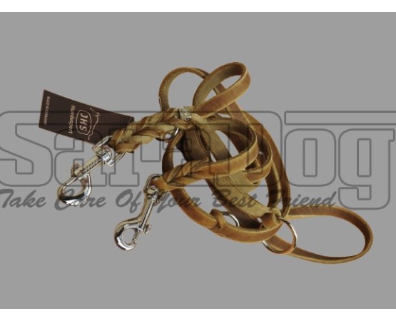 Lesa reglabila in 3 locuri JHS Hundesport Germany , confectionata din piele naturala de cea mai buna calitate culoare Green Olive , prevazuta cu feronerie din otel cromat , feroneria a fost atasata prin impletituri realizate manual .