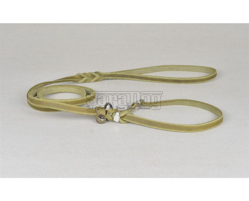 Lesa strangulanta din piele Junior Hundebedarf Olive Green pentru caini show 10 mm x 150 cm