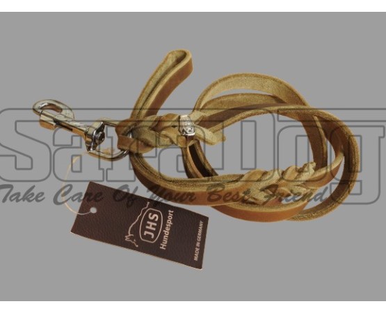 Lesa din piele cu capete impletite Junior Hundebedarf Olive Green 12 mm x 130 cm