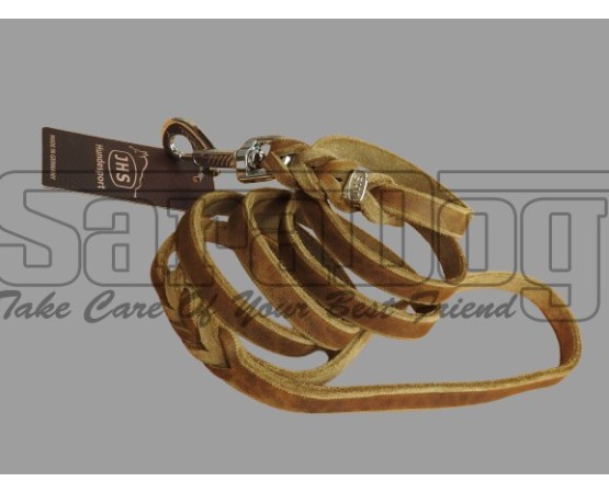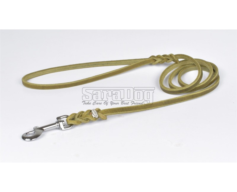 Lesa din piele cu capete impletite Junior Hundebedarf Olive Green 15 mm x 150 cm