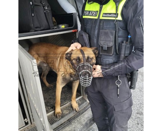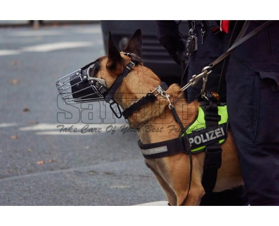 Botnita militara pentru Ciobanesc Belgian Malinois Sara Dog. Confectionata din otel cromat si captusita in interior cu strat de piele fett si dublata captuseala cu pasla moale pentru confortul cainelui.La conceperea botnitei s-a pornit de la standardul rasei si s-au efectuat masuratori pe 50 de caini din rasa Ciobanesc Belgian Malinois din 2 canise de elita din Germania. Modelul este conceput pentru cainii de politie, armata, trupe speciale, iar pentru conceperea botnitei au fost consultati specialisti din domeniul militar care antreneaza cainii de serviciu din Germania. Datorita designului ergonomic purtarea acestei botnite nu incomodeaza sub nici o forma cainele si asigura o ventilare optima. Creata pentru a fi utila si practica in acelasi timp, dar cel mai important este faptul ca, cainele se simte foarte confortabil datorita designului cat si a materialelor de cea mai buna calitate folosite la confectionare. Aceasta botnita nu creeaza iritatii sau alergii si este non-toxica. Otelul cromat folosit la confectionare este de cea mai buna calitate , pielea fett este de cea mai buna calitate, iar pasla moale din interior este hipoalergenica. Printre avantajele cele mai importante mentionam: inhibarea muscaturilor, cainele este perfect protejat in cazul in care vorbim de un caine de protectie personala antrenat sa va apere chiar si purtand botnita de lucru.Daca este atasata corect avand toate bretelele de prindere reglate corespunzator cainele nu isi va putea scoate botnita. Nu va recomandam sa lasati cainele nesupravegheat atunci cand poarta botnita. Pasla din interior previne frecarea in urma purtarii intesive. In zilele fierbinti de vara cainele dvs chiar daca poarta botnita va putea respira corespunzator, vizitele la medicul veterinar pentru diverse tratamente nu vor mai constitui o problema. In cazul in care cainele dvs are obiceiul de a musca, mesteca sau manca obiecte gasite pe sol cu ajutorul acestei botnite puteti rezolva aceste probleme.